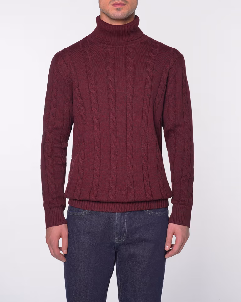 بافت مردانه F73 یقه اسکی طرح پیچک زرشکی ملانژ