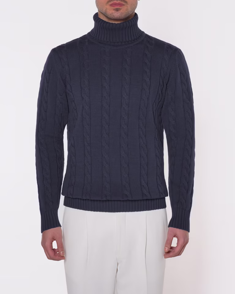 بافت F73 یقه اسکی طرح پیچک سورمه ای