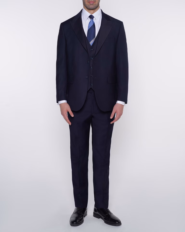 کت و شلوار و ژیله S204 یقه پیک Bazzelli Style سورمه ای شلوار پاکتی