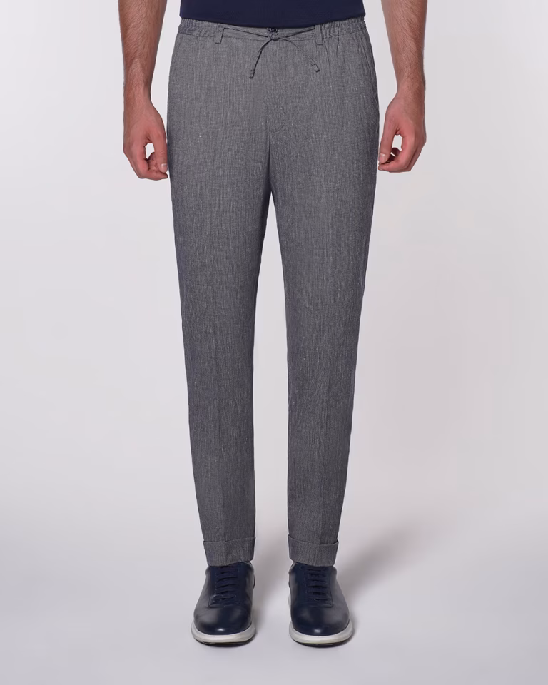 شلوار لینن Regular fit TL3 کمرکش پاکتی طوسی