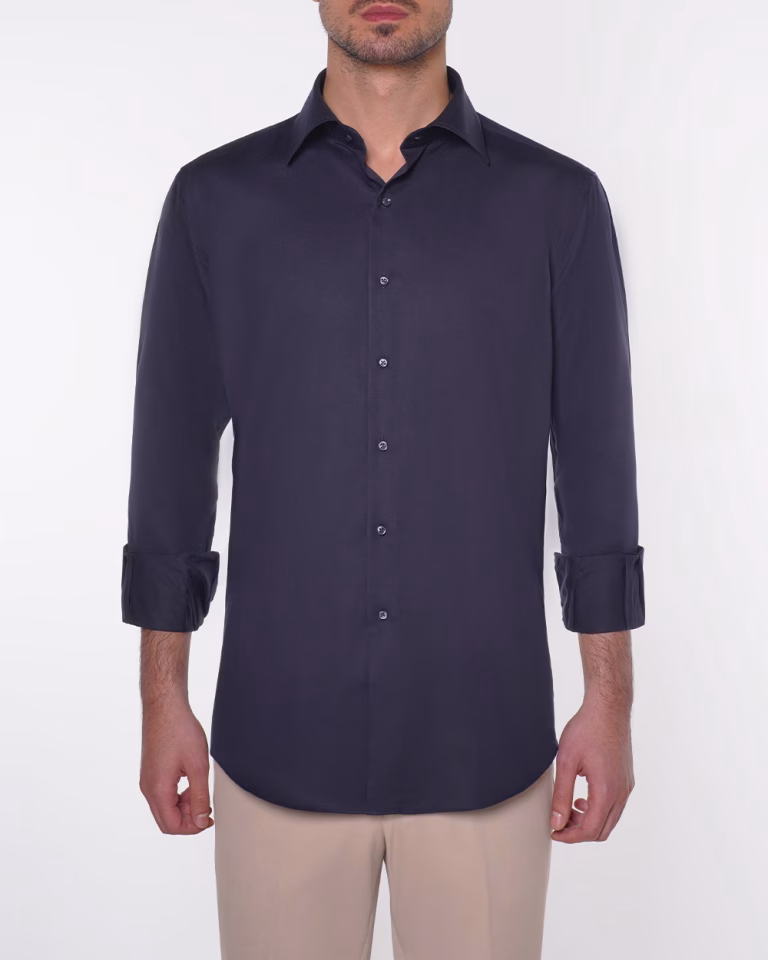 پیراهن پنبه P369 یقه London دودکمه زغالی