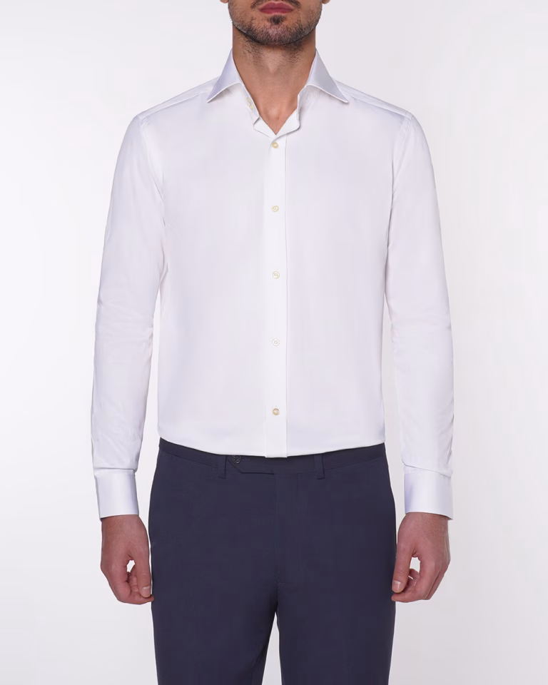 پیراهن پنبه P376 یقه Cutaway قاپک افسری سفید