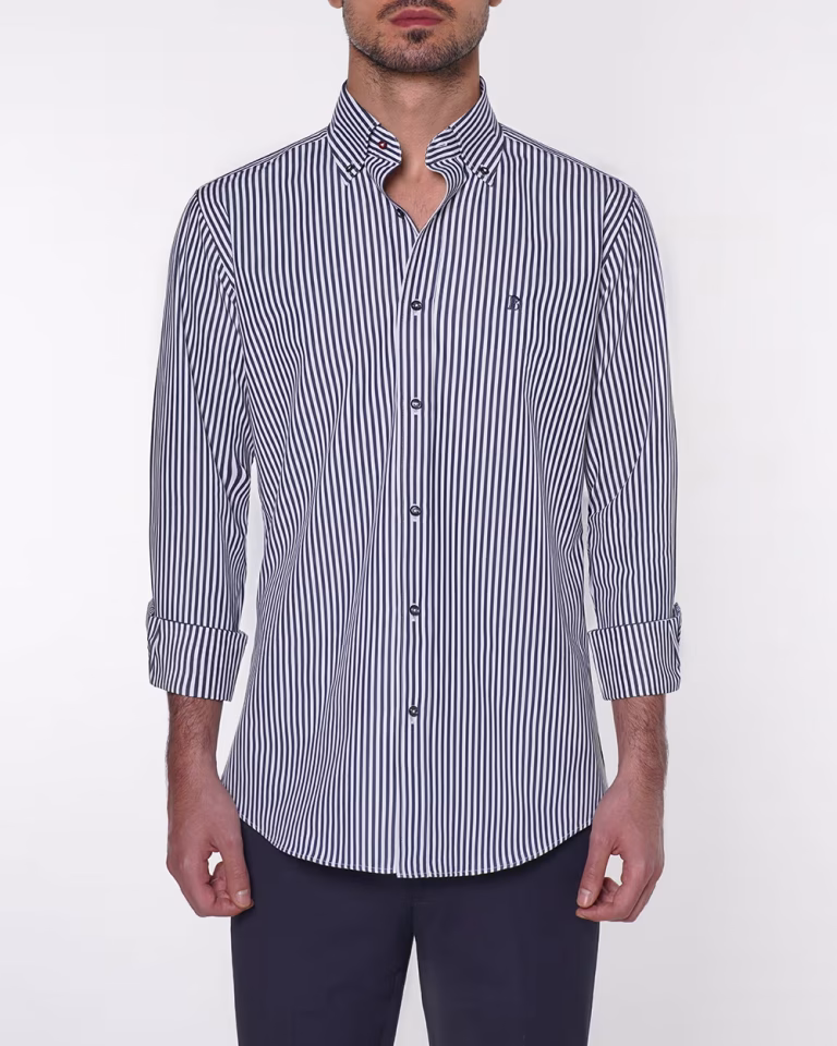 پیراهن پنبه P374 یقه Button Down دیپلمات سفید سرمه ای