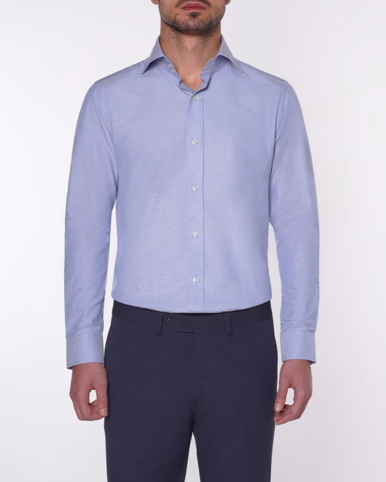 - پیراهن نخ پنبه مردانه: پنبه، پادشاه پارچهها در صنعت پیراهن مردانه است. بازلی از بهترین انواع پنبه مانند پنبه پیما یا سوپیما استفاده میکند که نرمی، دوام و قابلیت رنگپذیری فوقالعادهای دارند. پیراهنهای نخ پنبه مردانه بازلی در انواع بافتها مانند پاپلین (برای پیراهنهای رسمی)، آکسفورد (برای پیراهنهای نیمه رسمی و کژوال) و توییل عرضه میشوند و برای استفاده در تمام فصول مناسباند.