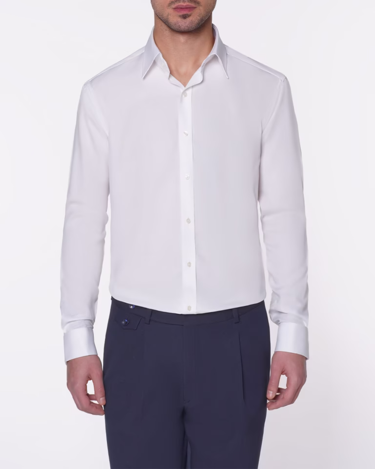پیراهن پنبه P376 یقه Cutaway قاپک افسری سفید