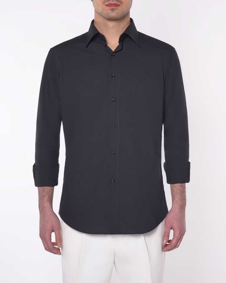 پیراهن مردانه پنبه P401 یقه Button Down قاپک افسری مشکی