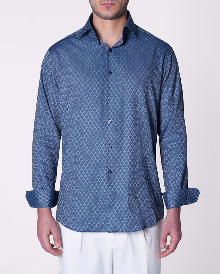 پیراهن P322 یقه Cutaway نیلی طرح دار طوسی