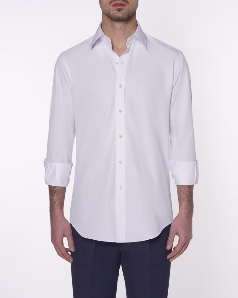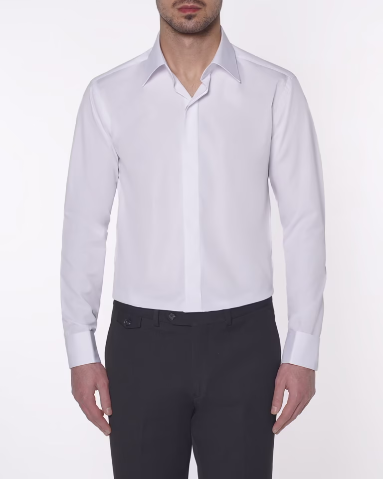 پیراهن P399 یقه Frack مچ دوبل دکمه فلزی سفید