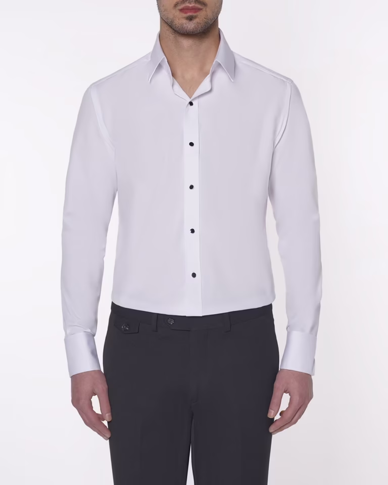 پیراهن مردانه P404 یقه American مچ دوبل دکمه فلزی سفید