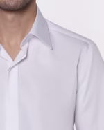 پیراهن مردانه P403 یقه American مچ دوبل دکمه فلزی سفید
