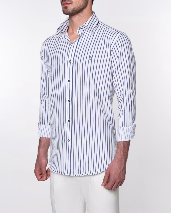 پیراهن P194 یقهدکمهدار طرحبرگ آبی