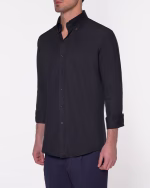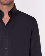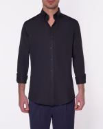 پیراهن پنبه P391 یقه بلند دکمه دار مشکی