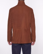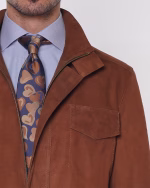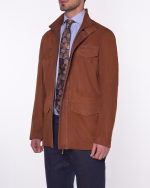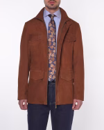 کاپشن چرم کلاسیک کمرکشدار قهوهای مدل NL15