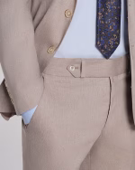 کت وشلوار لینن S210 یقه ناچ شلوار پاکتی خاکی