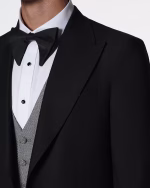 کت و شلوار S151 یقه پیک ساتن مشکی ژیله طرح دار سفید مشکی
