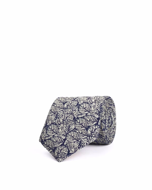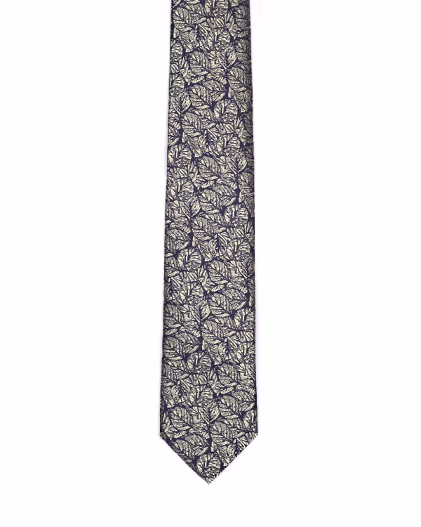 کراوات Ti09 طرح برگ سفید مشکی