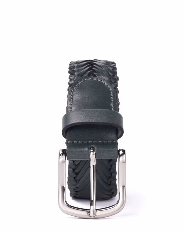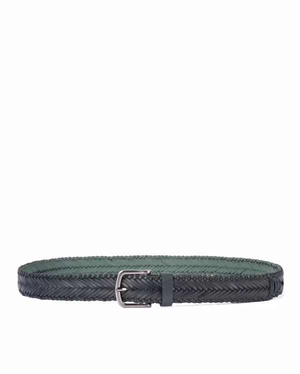 کمربند L58 چرم حصیربافت سبز سگک پین
