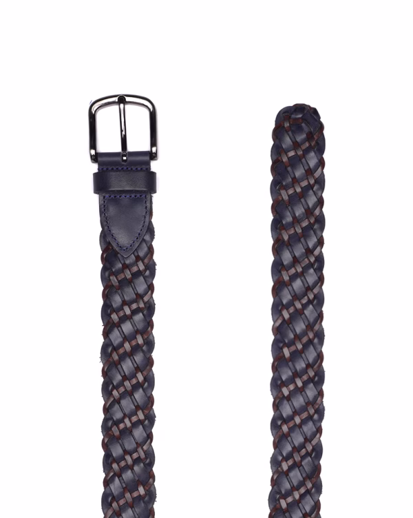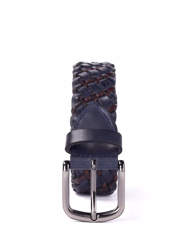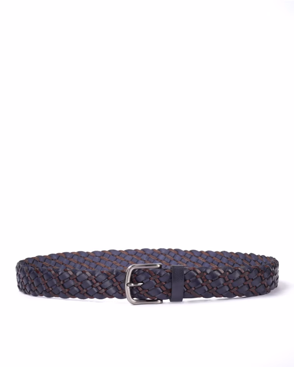 کمربند L58 چرم حصیربافت سرمه ای قهوه ای سگک پین