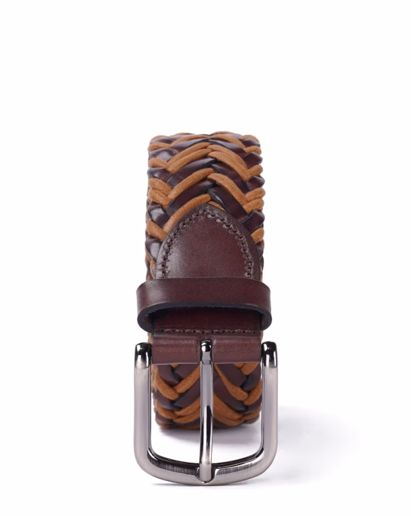 کمربند L58 چرم حصیربافت قهوه ای کرم سگک پین