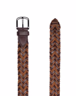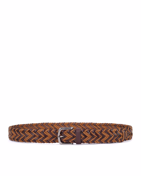 کمربند L58 چرم حصیربافت قهوه ای کرم سگک پین عدد