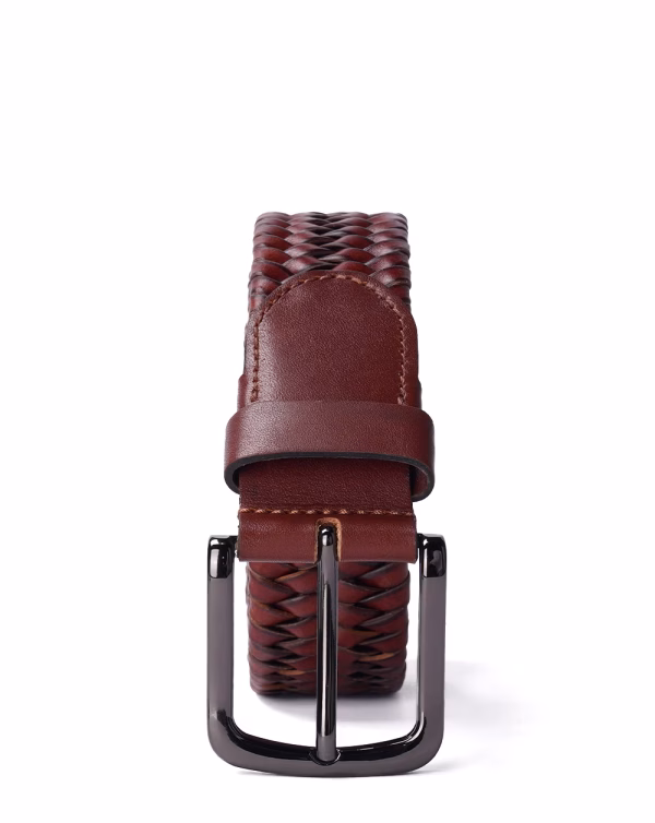 کمربند L59 چرم حصیربافت Flexible عسلی سگک پین