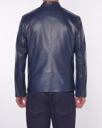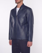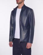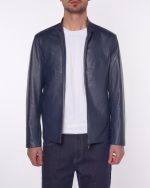 کاپشن چرم NL3 یقه ایستاده طوسی