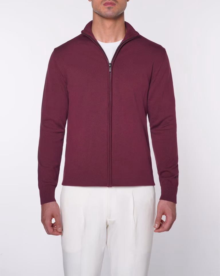 بافت FJ12 تمام زیپ یقه ایستاده زرشکی