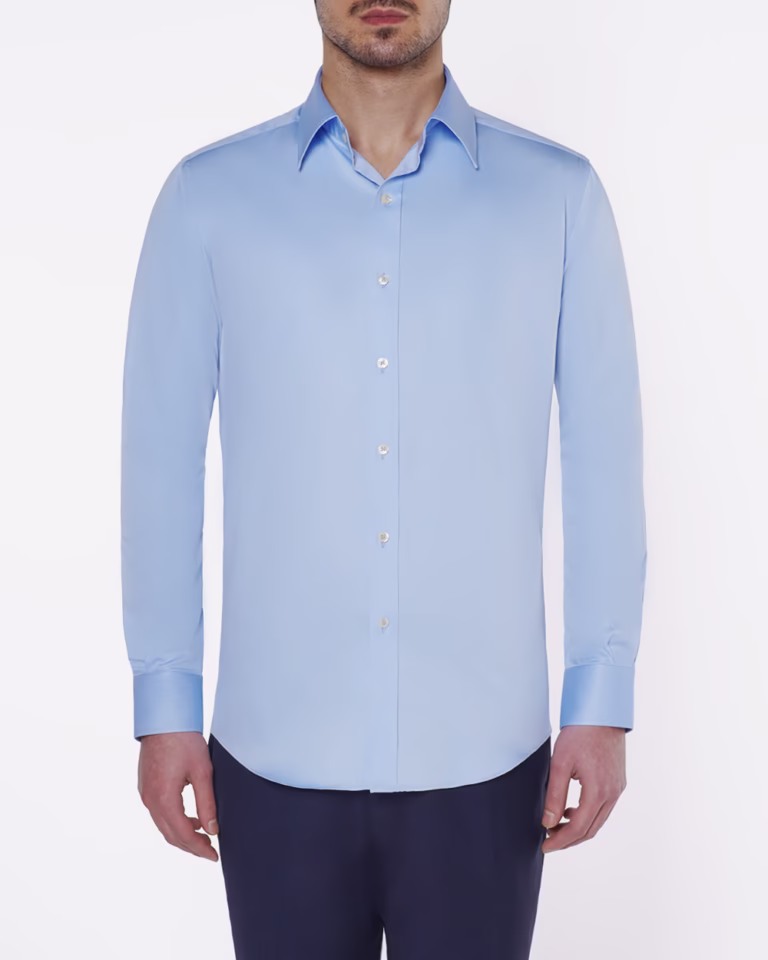 پیراهن مردانه پنبه P408 یقه french قاپک افسری آبی