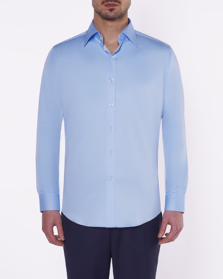 پیراهن مردانه پنبه P407 یقه American قاپک افسری آبی