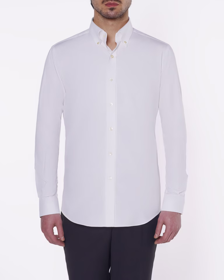 پیراهن مردانه پنبه P405 یقه Button Down قاپک افسری سفید