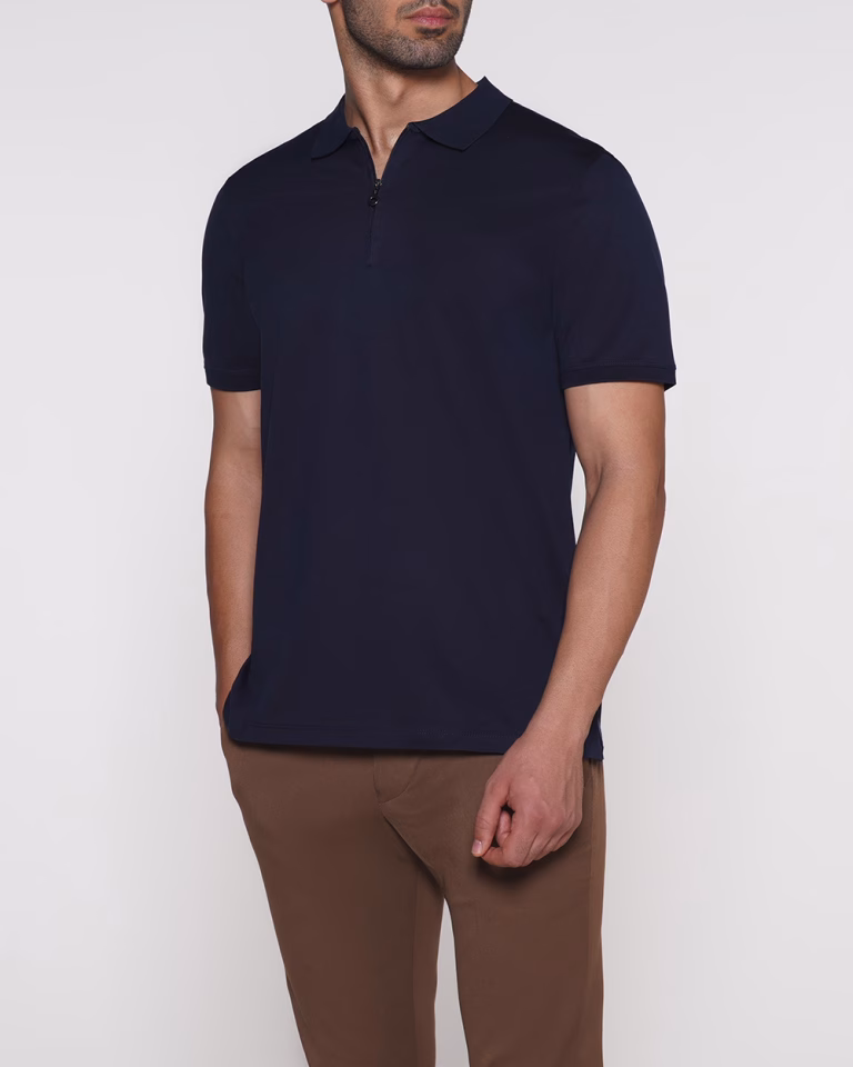تیشرت بازلی D26 یقه زیپدار سورمه ای