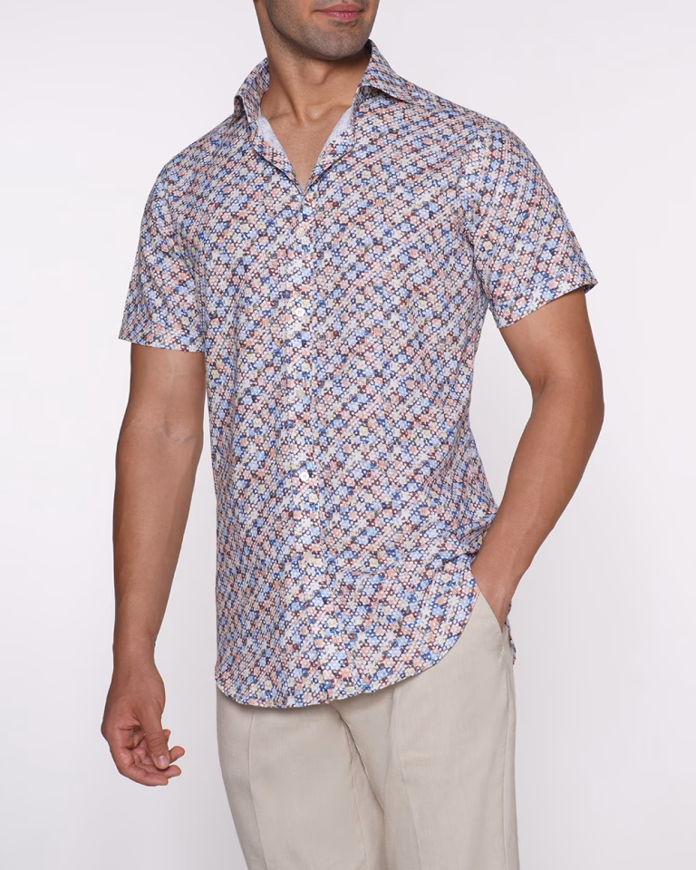پیراهن PS19 یقه بک طرح دار آب رنگی